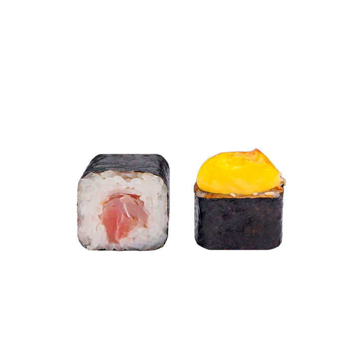 Состав: рис, тунец слабосоленый, соус сырный, нори. Роллы не являются горячими. Запекание - способ приготовления шапочки на роллах, а не температура. Выход: 146 гр. Годен 3 часа при t 20°C; 12 часов при t 4±2°C.