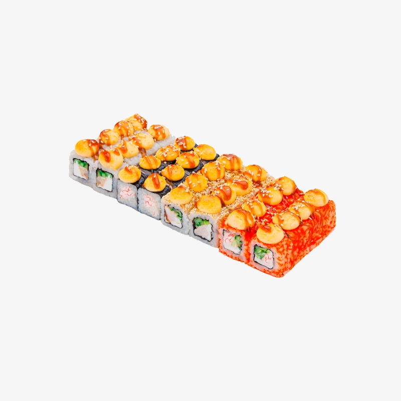 849 гр, 4 вида, 32 кусочков Запеченные: Аляска, Майами, Калифорния Хот, Краб Хот Годен 3 часа при t 20°C; 12 часов при t 4±2°C.